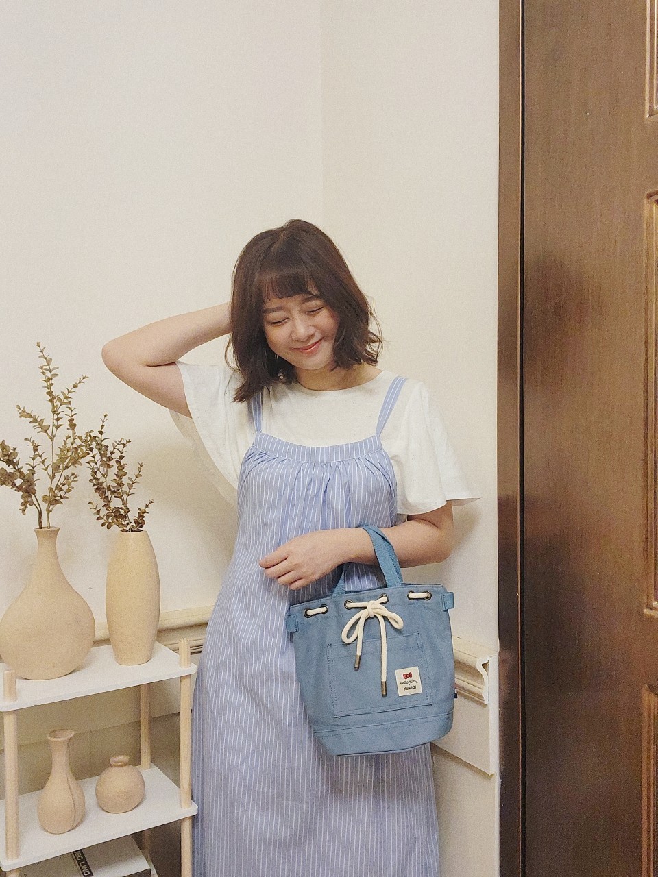 部落客 梨寶穿搭體驗 / 聯名款束口兩用帆布水桶包 Abbey