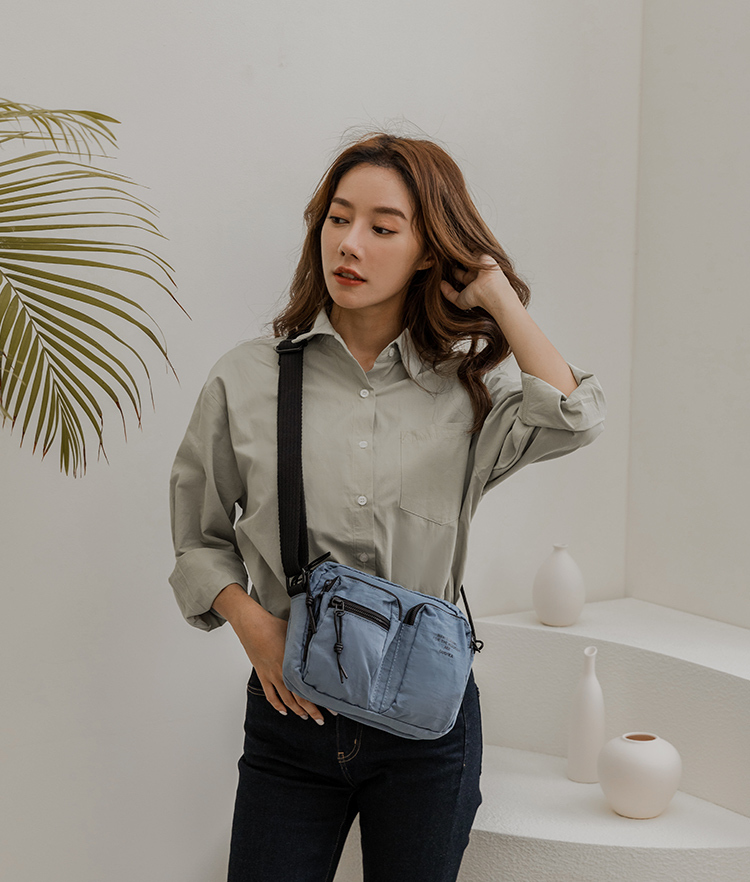 防潑水機能收納單肩包 BUFFY 莫蘭迪藍