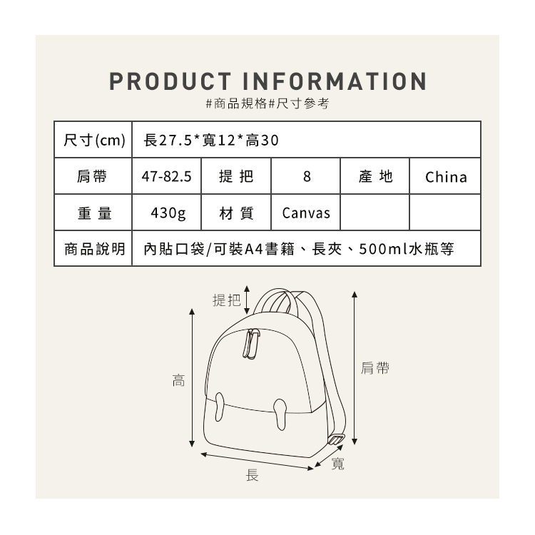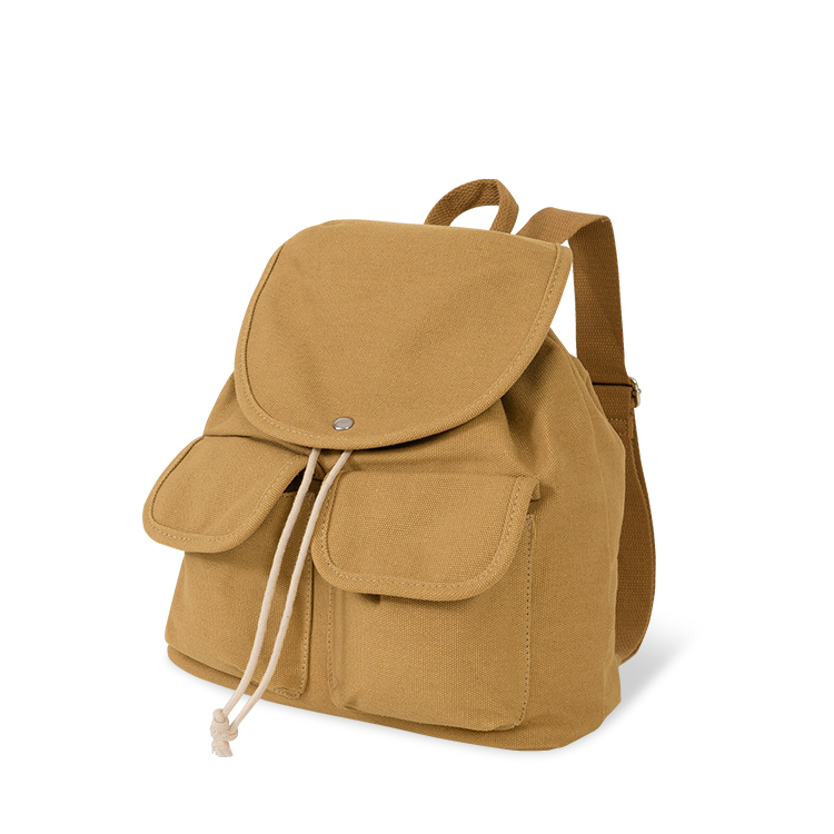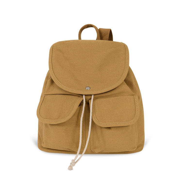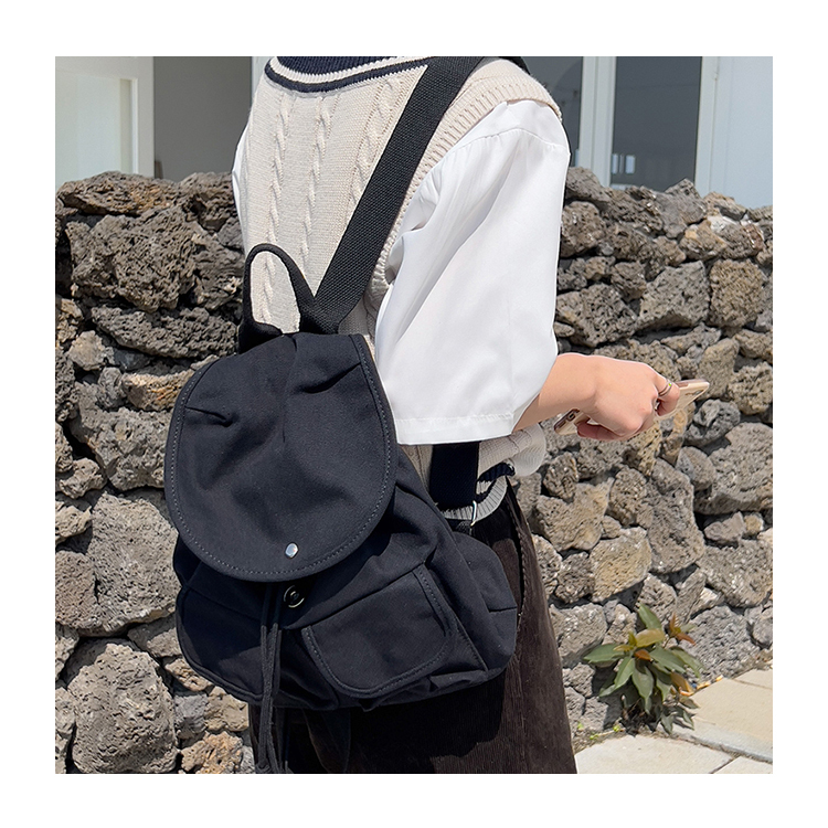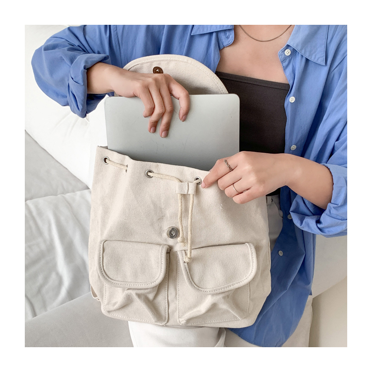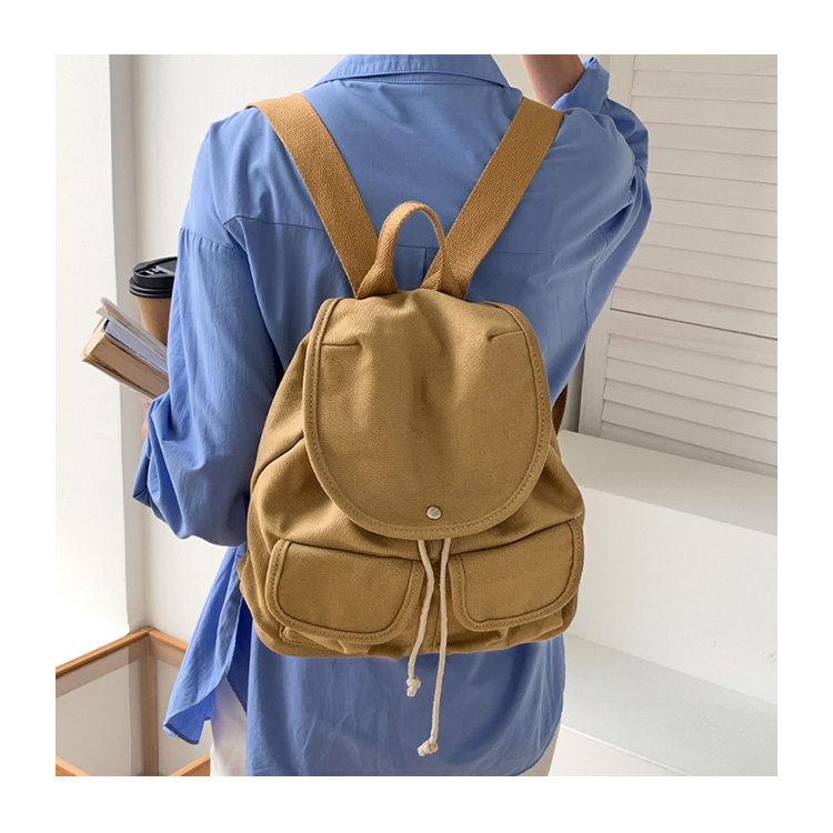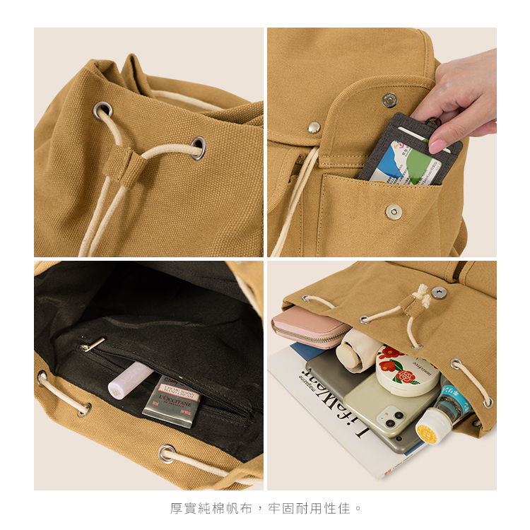 INS清新風百搭翻蓋抽繩帆布後背包 燕麥米