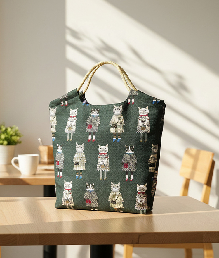 【日本Kusuguru】貓咪手提袋 蜜豆公主墨綠